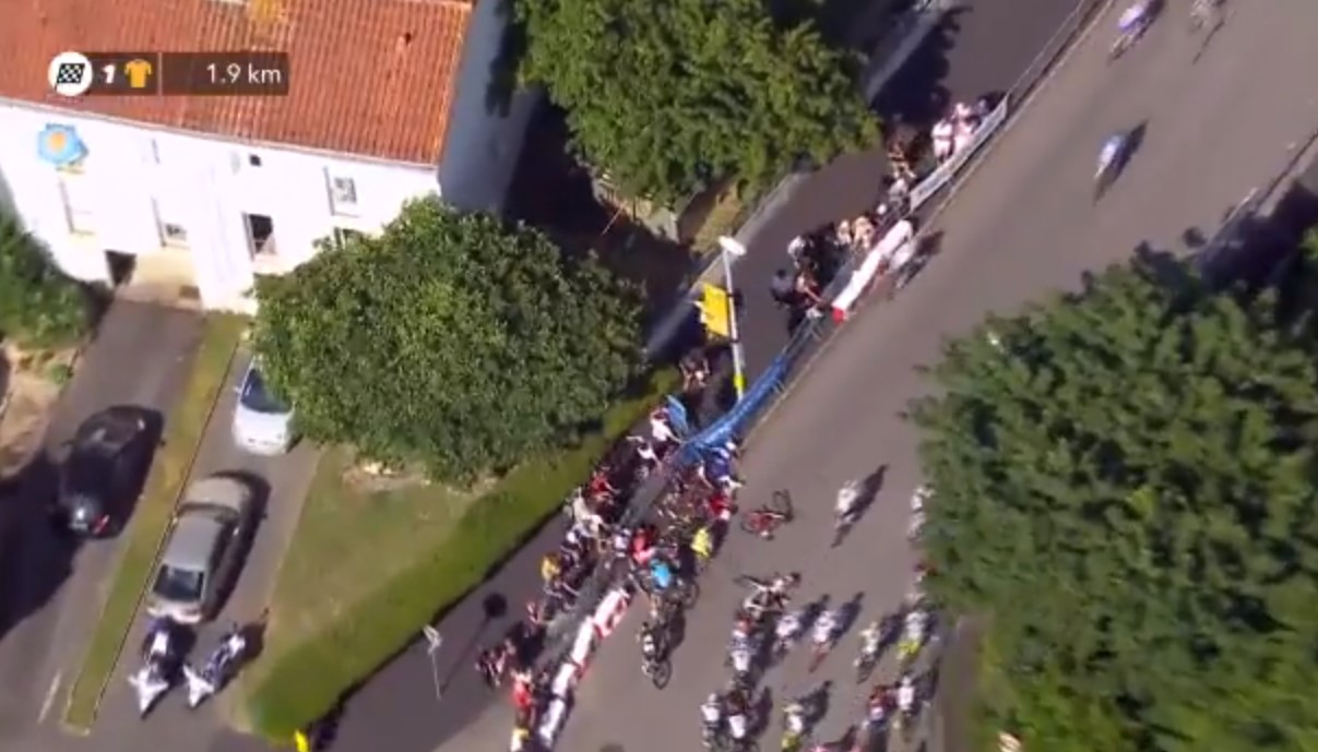Apenas restaban dos kilómetros para el final de la etapa cuando en una curva uno de los ciclistas fue al suelo y con él hasta 5 corredores más.