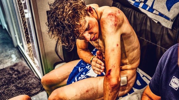 Tremenda imagen la que Bob Jungels, corredor luxemburgués del Quick-Step, ha publicado en su cuenta de Twitter para dar a conocer al mundo de un deporte como el ciclismo. El pasado domingo, en la novena etapa del Tour de Francia disputada entre Arras y Roubaix con un recorrido de 156,5 kilómetros, se produjeron múltiples caídas.