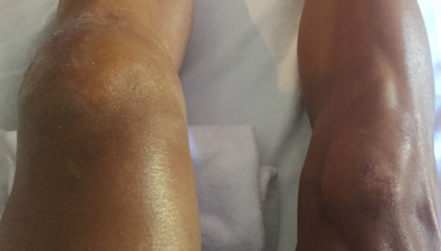 El ciclista decidió seguir corriendo, pese a tener la rótula rota, durante 60 kilómetros más. Una acción que algunos tacharán de valiente y otros de locura. El propio Gilbert ha colgado en redes sociales el estado en el que quedó su maltrecha rodilla. "Cuando tienes la rótula rota y decides seguir durante 60 kilómetros más", sentenció en su tuit.