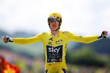 Por fin se marchó Kwiatkowski. Lo levantó su compañero Froome, pero el ciclista de origen keniano se quedó de pie. Llegaba Dumoulin con los colores arcoiris para demostrar que la medalla de oro de la crono de Bergen no fue una casualidad. Y a continuación, brazos en alto, eufórico, se presentaba el heredero de Wiggins y Froome, un galés que prolonga el dominio del Sky en el Tour de Francia.