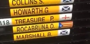 Fuera cosa de sus amigos escocés o no, lo cierto es que la broma pareció no importarle mucho al bueno de Rocabruna. La chapa con la estelada junto a su nombre ahí seguía hasta que otro golfista decidió retirarla.