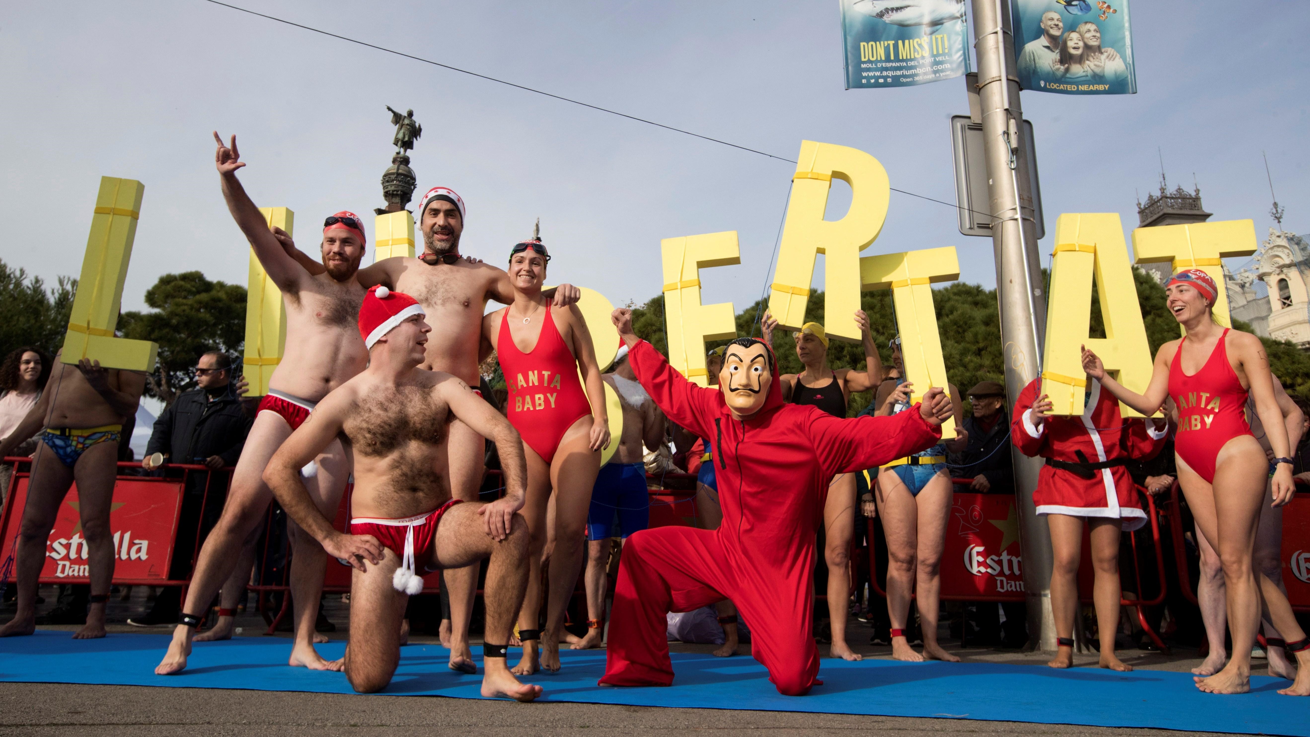 Este martes, día de Navidad, tuvo lugar en el Puerto de Barcelona la 109 edición de la Copa Nadal, con la participación de más de 400 nadadores. Con una temperatura de 16 grados, varios asistentes aprovecharon para pedir la libertad de los políticos encarcelados, mezclando una vez más el deporte con la política.