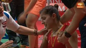 Carolina Marín se lesionó en la jugada del 9-2. Trató de continuar en el partido pero, con 10-4, se dejó caer sobre el suelo antes de comunicar su retirada entre lágrimas.