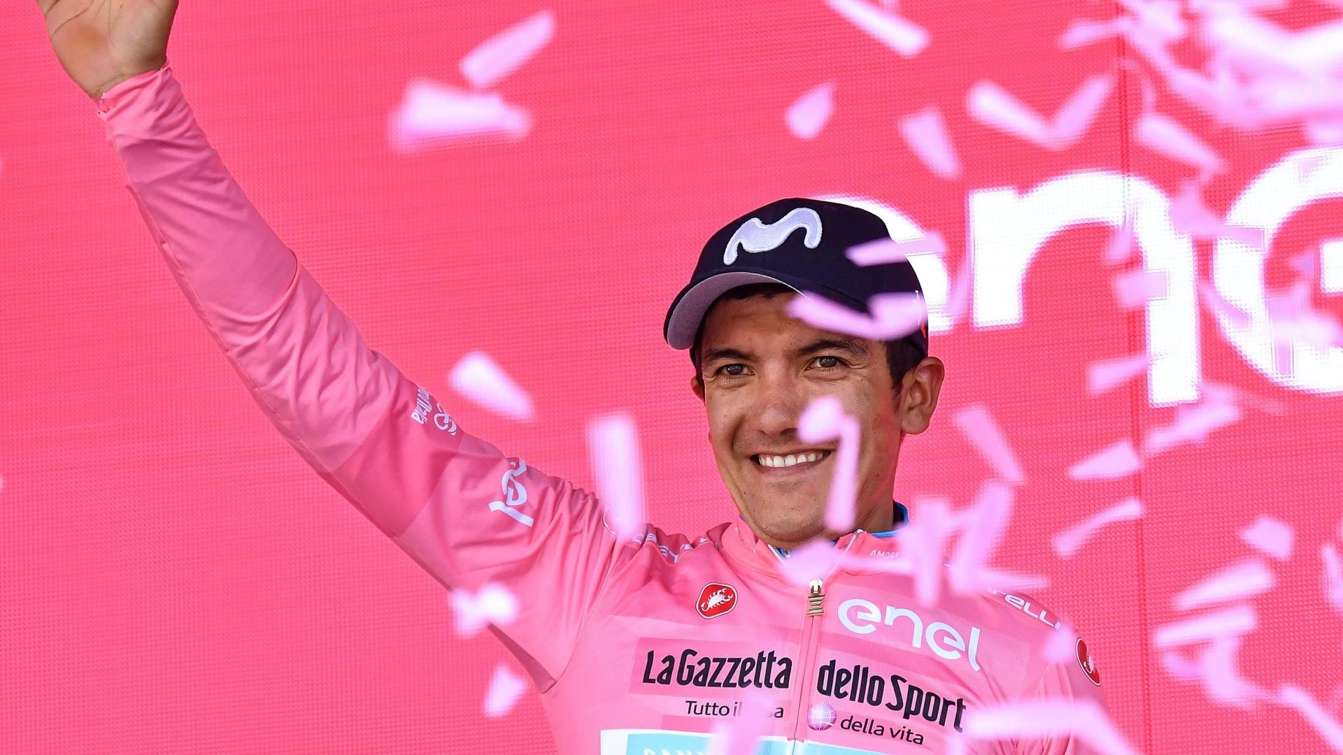El ecuatoriano Richard Carapaz refuerza la maglia rosa del Giro de Italia tras una exhibición junto al español Mikel Landa en el Mortirolo, donde el Movistar y el italiano Vincenzo Nibali sumaron fuerzas para someter al esloveno Primoz Roglic, quien cedió en meta 1.23 minutos.