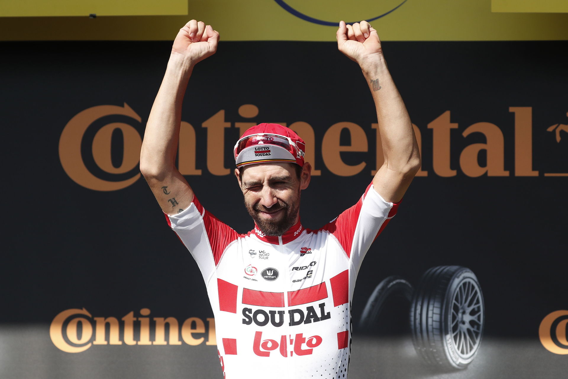 Se trata de un corredor que ha ganado etapas en las tres grandes, y siempre dejando su sello, En el Giro 2012 ganó en la cima del Stelvio tras atacar en el Mortirolo a 65 kilómetros de meta. En la Vuelta ganó en Gijón escapado en 2017. Ahora, en Saint Etienne, ciudad con tradición en la fabricación de armas y bicicletas, hizo diana en una jornada que bien hubiera podido firmar Alfred Hitchcock.