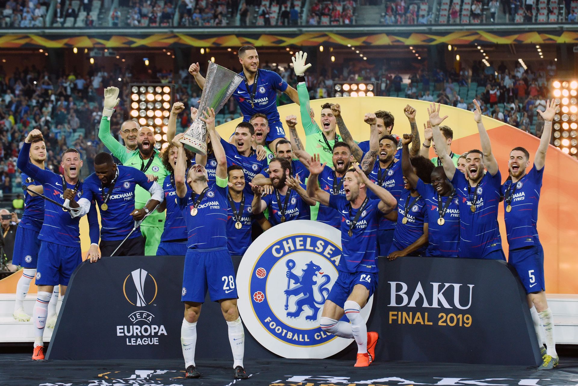 El Chelsea levantando el trofeo de campeón en Bakú