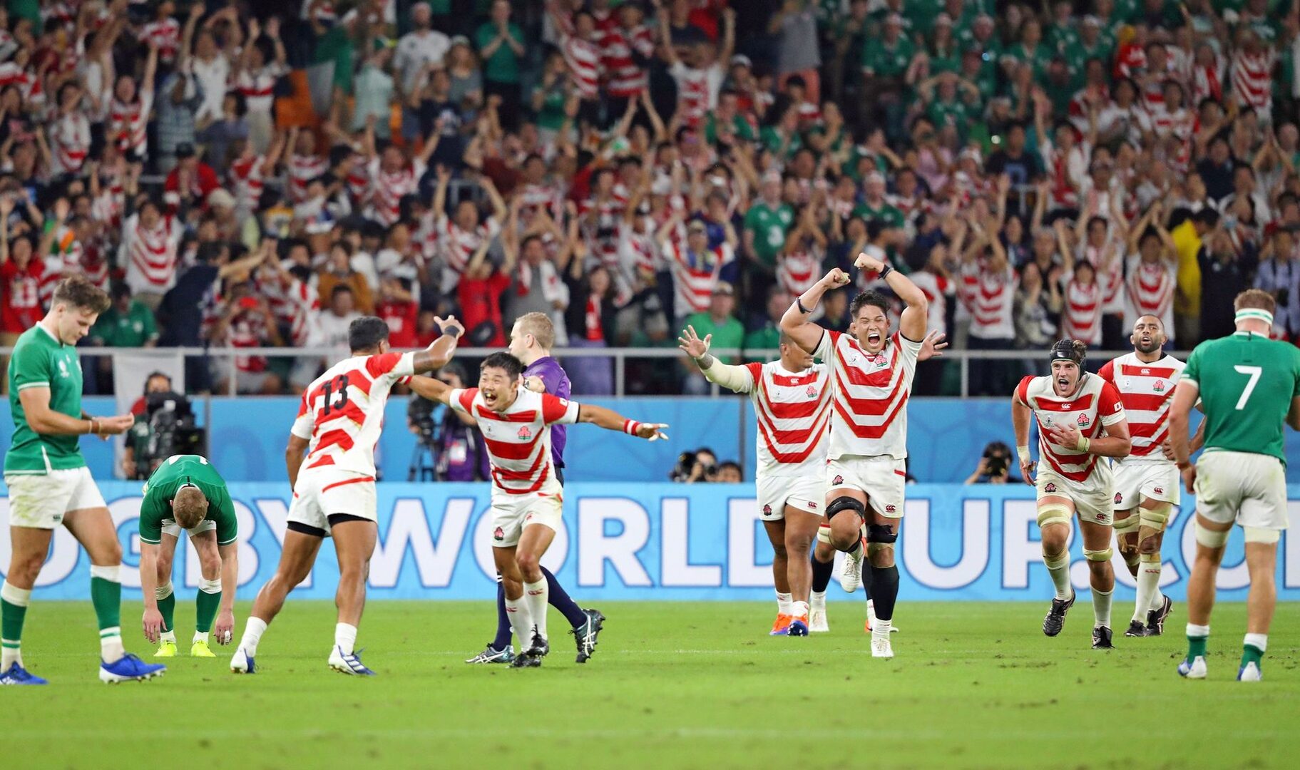 Johnny Sexton, en la grada por precaución, convertido en un recurso constate del realizador. Sobre el césped, Michael Leitch, Kazuki Himeno, Kotaro Matsushima o Timothy Lafaele lo eran de un conjunto serio, ordenado y trabajado, que más allá de las imprecisiones rivales y la doble vara de medir arbitral, mereció un resultado preparado desde hace años. Marcador que deja a Irlanda un punto de bonus defensivo que, de todo ir según lo esperable y vencer a Rusia y Samoa, le permitirá acceder a los cuartos de final sin mayores problemas. Si nada cambia, el cruce será con Nueva Zelanda y no con Sudáfrica. Japón decidirá ante Escocia. Una vez más, las dos selecciones verdes en sus manos.
