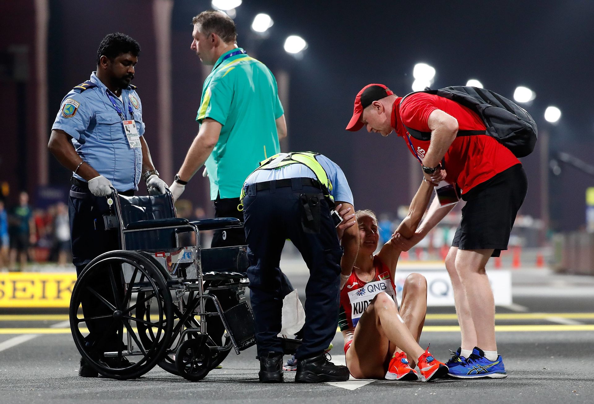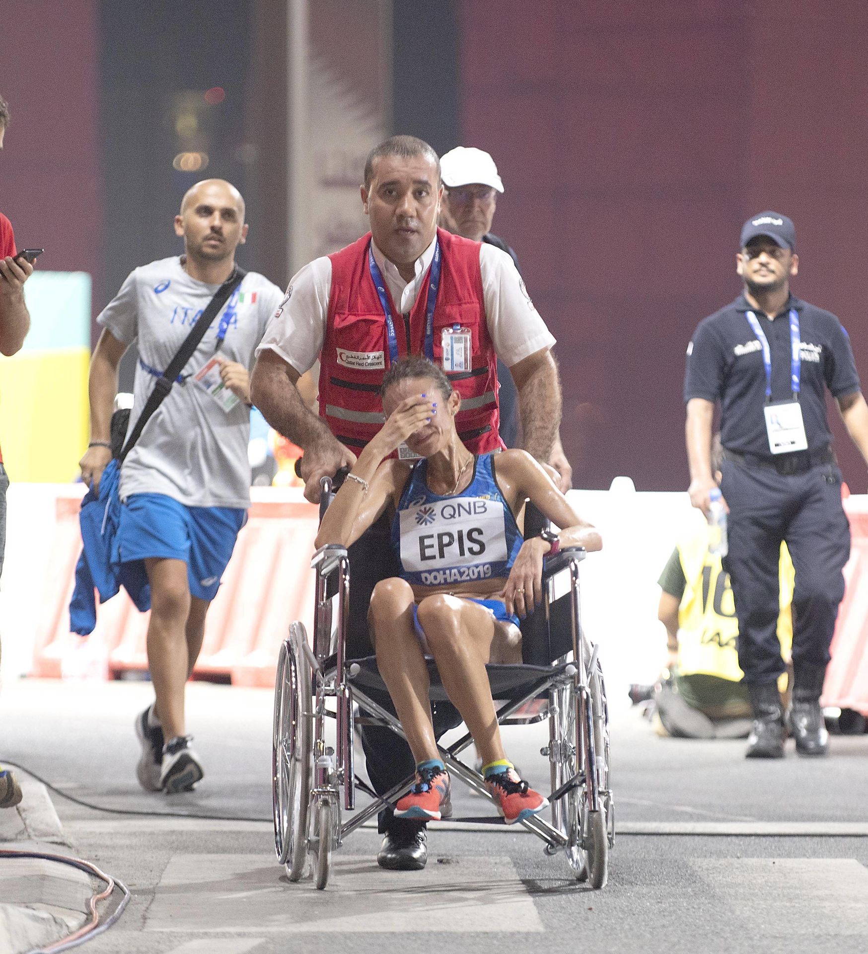 La combinación letal de altas temperaturas (superiores a los 30 grados) con una humedad todavía peor, rondando el 80 por ciento, ofreció el peor de los escenarios a los atletas, aun cuando las asistencias estuvieron siempre al quite. Así, el amplio dispositivo médico de Doha 2019, que ha estado dirigido por el doctor español Juan Manuel Alonso, tuvo que trabajar a destajo para atender a los desvanecidos y trasladarlos en silla de ruedas a la clínica de meta, donde al cabo de una hora recuperaban el aliento.