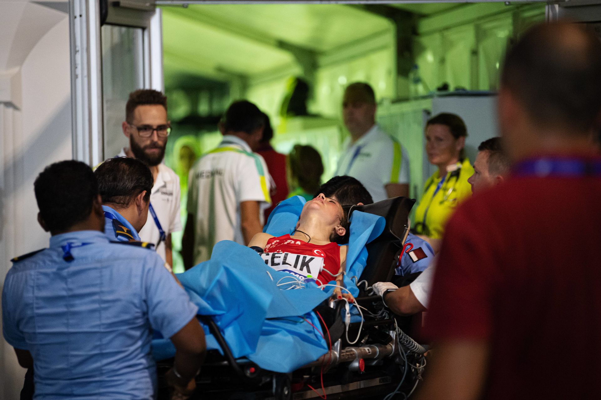 No tardaron en llegar los primeros abandonos. Mucho se había rumoreado con la cancelación de la prueba, pero al final la maratón femenina se disputó y concluyó con un ritual que, las que llegaron, repetían. Entraban en meta, celebraban con la poca fuerza que aún tenían y posteriormente se desplomaban al suelo. Tal fue el esperpento que en el centro médico del lugar ya no cabía ninguna atleta más. Entre ellas, por ejemplo, la turca Fadime Çelik, cuya imagen ha dado la vuelta al mundo: completamente exhausta, tuvo que ser atendida en camilla por el personal médico.