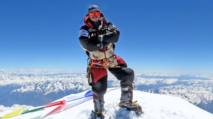 En mayo pasado, y en solo 48 horas, el alpinista tocó la cima de la montaña más alta, el Everest (8.848 metros), descendió y subió el Lhotse (8.516 metros), y después voló hasta el campamento base del monte Makalu (8.481 metros) y también lo escaló.