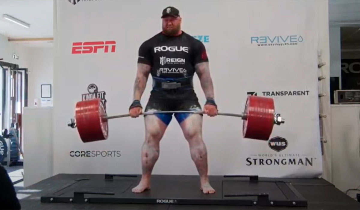 El islandés, que mide 2,05 metros y que en 2018 ganó la competición de El hombre más fuerte del mundo (World's Strongest Man), levantó una barra que se doblaba y deformaba como consecuencia del peso depositado en sus extremos.