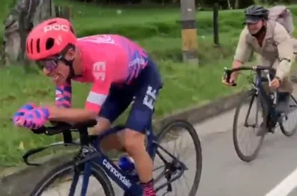 Mientras el ciclista colombiano realizaba una prueba de contrarreloj, el hombre se le pegó a la rueda y lo pudo aguantar durante varios kilómetros.