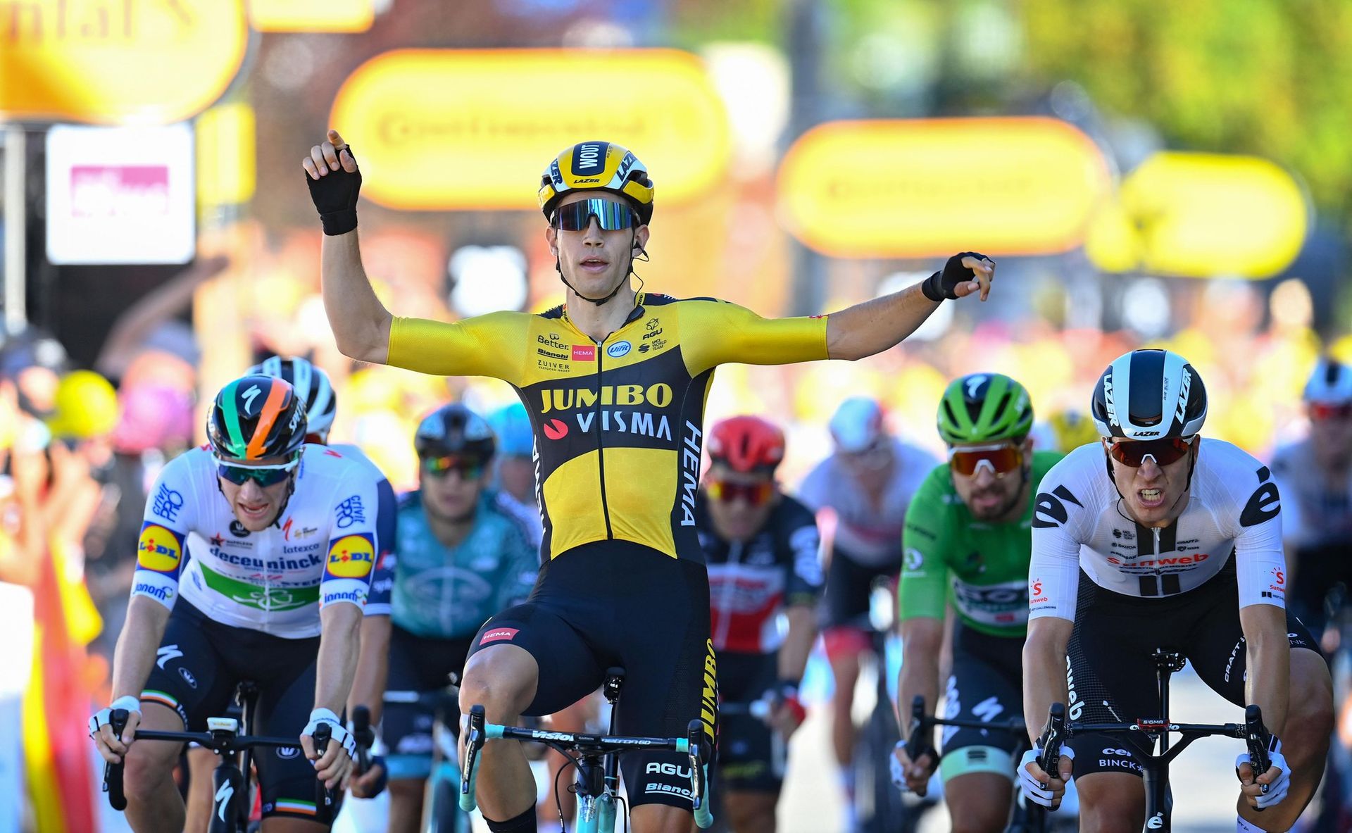 Pero, más allá de una nueva exhibición de Van Aert, que coge el relevo de 2007 de Tom Boonen como ciclista belga con más de un triunfo en un mismo Tour, la etapa tuvo mucho protagonismo, esta vez sí atractivo puro, gracias al Bora, al Ineos y a los abanicos.