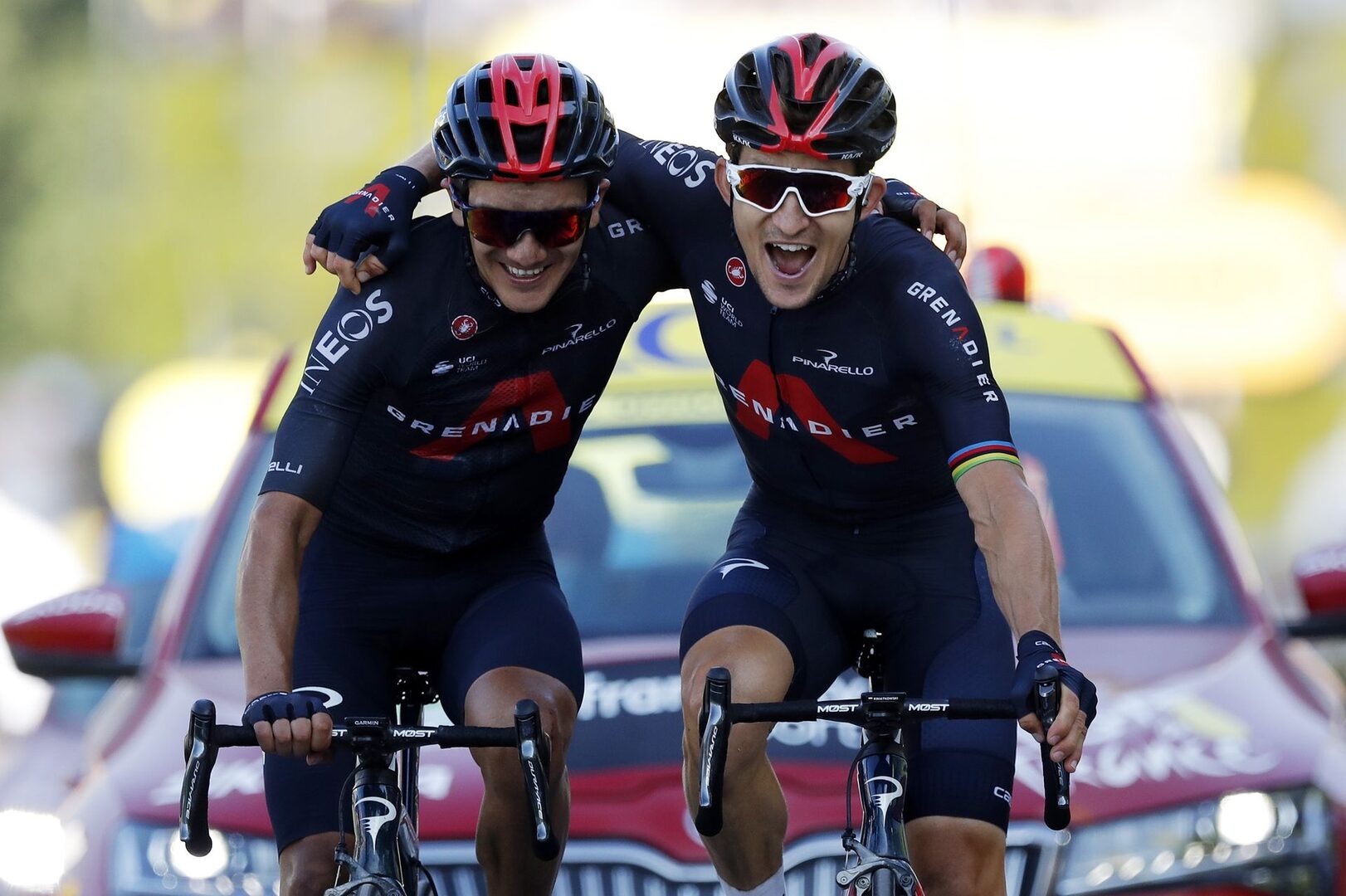 Un doblete con el que el Team Ineos Grenadiers se regala todo un lujo. Han sufrido mucho, seguro que habrán decepcionado a muchos, con el abandono tras hundirse de Egan Bernal, vigente campeón, y sin ser protagonistas. Pero han mutado y, con tesón, se llevarán esta etapa en la que descolgaron a Pello Bilbao (Bahrain-McLaren) o Marc Hirschi (Sunweb), entre otros.