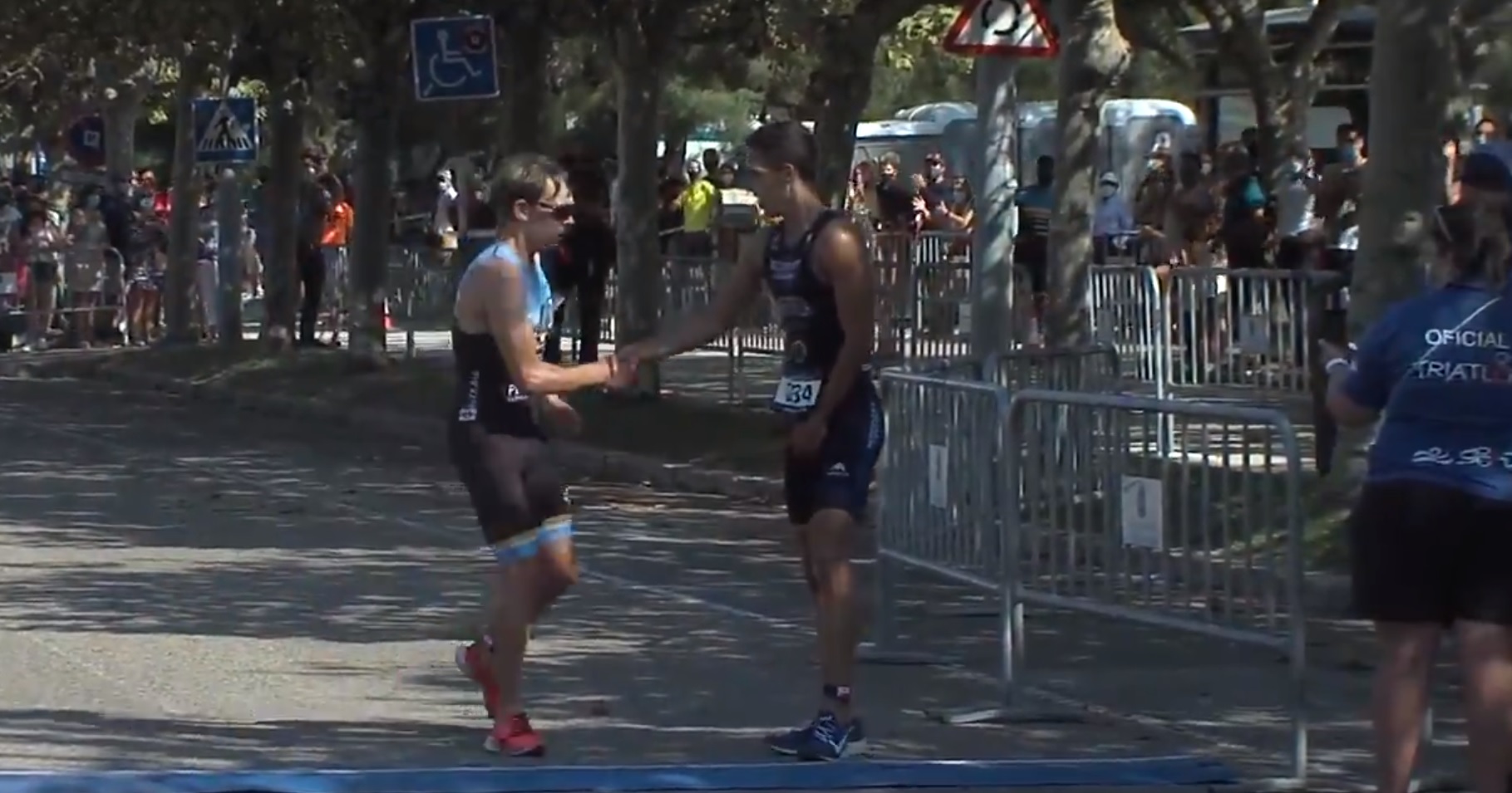 El inglés exhausto y enfadado por su error siguió corriendo detrás del triatleta español, y este en un gesto deportivo permitió que el británico cruzara antes que él la línea de meta.