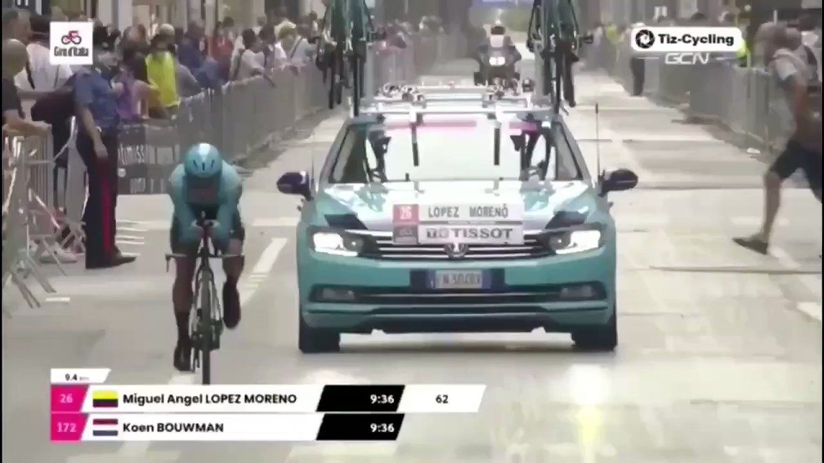 El colombiano Miguel Ángel López (Astana) ha sufrido una dura caída este sábado en pleno esprint tras resbalarse en un bache en la carretera que le llevaba a la línea de meta en Palermo, en la contrarreloj individual que abrió la 103 edición del Giro de Italia.