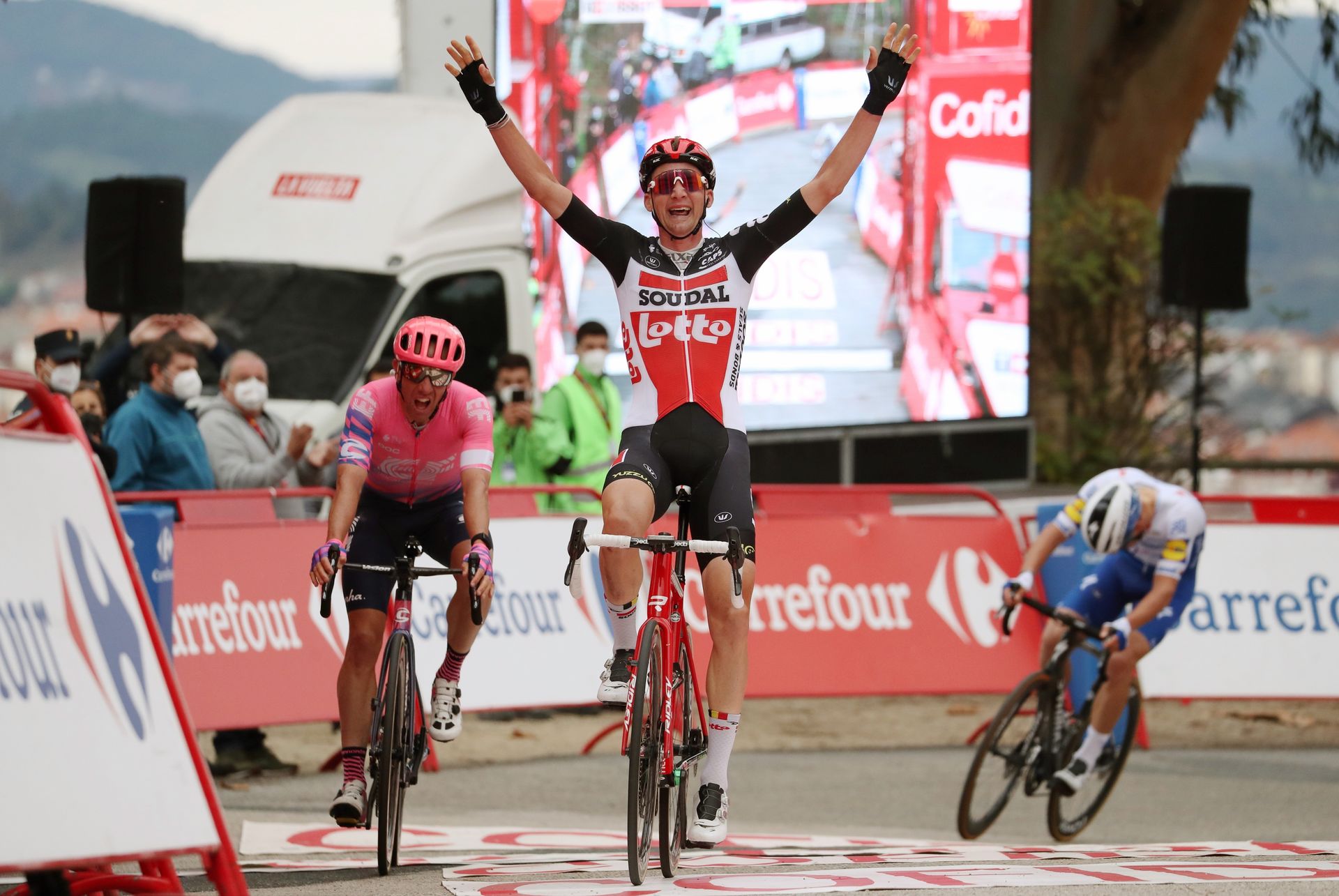 El belga Tim Wellens (Lotto Soudal) se ha impuesto este miércoles en la decimocuarta etapa de la Vuelta a España, de 204,7 kilómetros entre Lugo y Orense, mientras que el esloveno Primoz Roglic (Jumbo Visma) mantuvo el jersey rojo de líder.