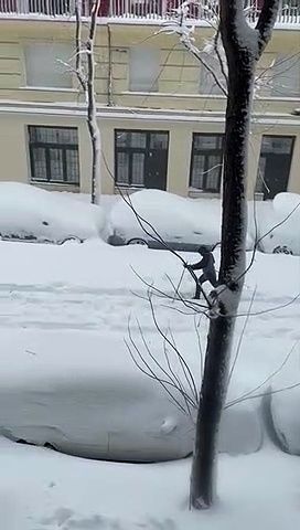 Dos ciudadanos, esquiando en plena calle Doce de Octubre, junto al Parque de El Retiro de Madrid, aprovechando la intensa nevada que ha dejado el temporal Filomena.