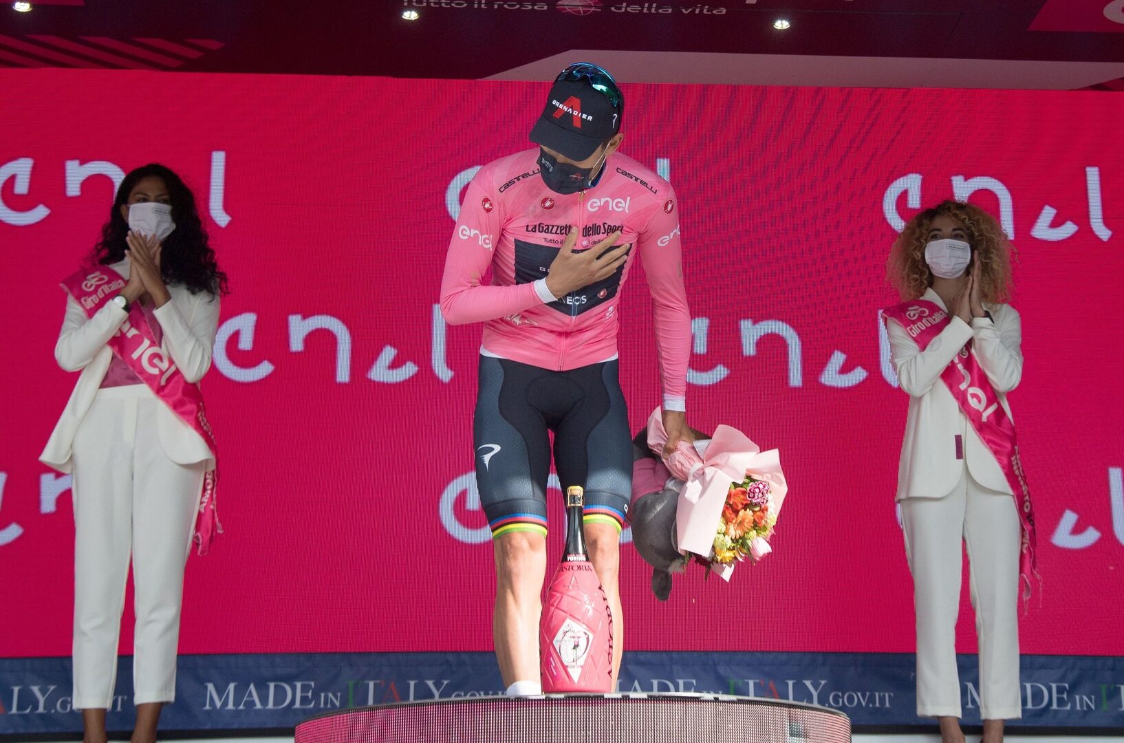 A más de 58 kilómetros por hora rodó Ganna, que aventajó en casi diez segundos a su compatriota Eduardo Affini, segundo de la etapa. El portugués Joao Almeida, cuarto, fue el mejor de los favoritos, mientras que el joven y carismático belga Remco Evenepoel se conformó con el séptimo puesto, a 19 segundos de Ganna.