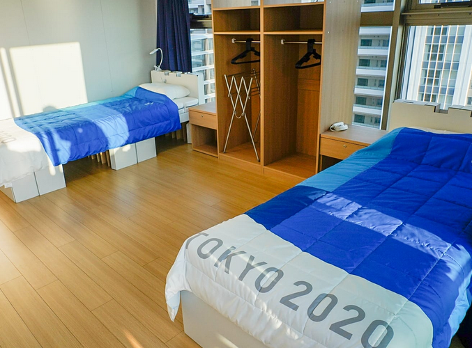 Where Olympic Dreams are made. Athletes' Village bedroom in Tokyo. #Tokyo2020 pic.twitter.com/2yvzcPELXT