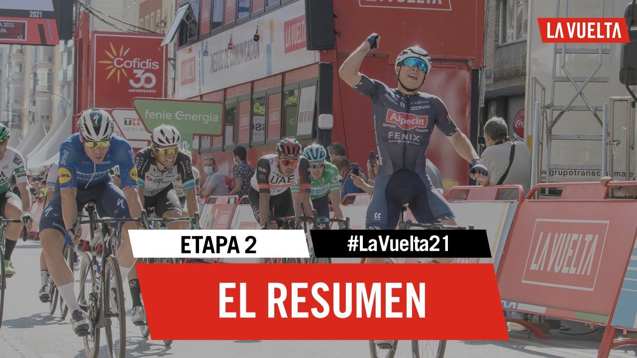 Resumen de la segunda etapa de la Vuelta 2021, una etapa llana de 166,7 kilómetros entre Caleruega y Burgos. Roglic conservó el maillot rojo.