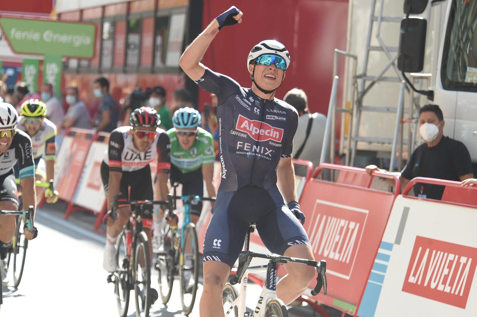 Philipsen repite tras ganar la segunda etapa en Burgos y la crono de la primera etapa. Es su tercera victoria en La Vuelta, que sumadas a las de 2020 hacen un total de diez victorias como profesional a sus 23 años. Una carrera larga por delante y triunfos ya de notoria importancia en un equipo que tiene a Merlier y Van der Poel, otros dos gigantes de la velocidad.