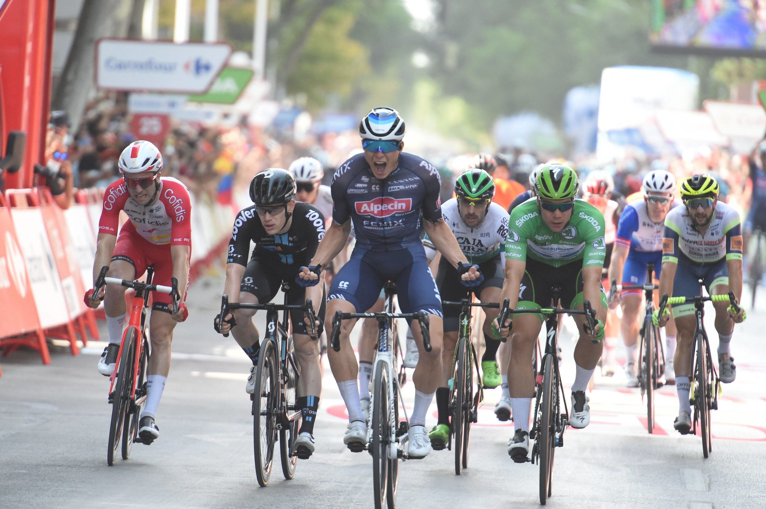Ambos vivieron este sábado en la Manga del Mar Menor su cuarto duelo en una carrera sin opciones para los escapados en las etapas llanas, y esta vez se impuso Jakobsen, que aprovechó el gran trabajo del Deceuninck en el tramo final de la etapa.