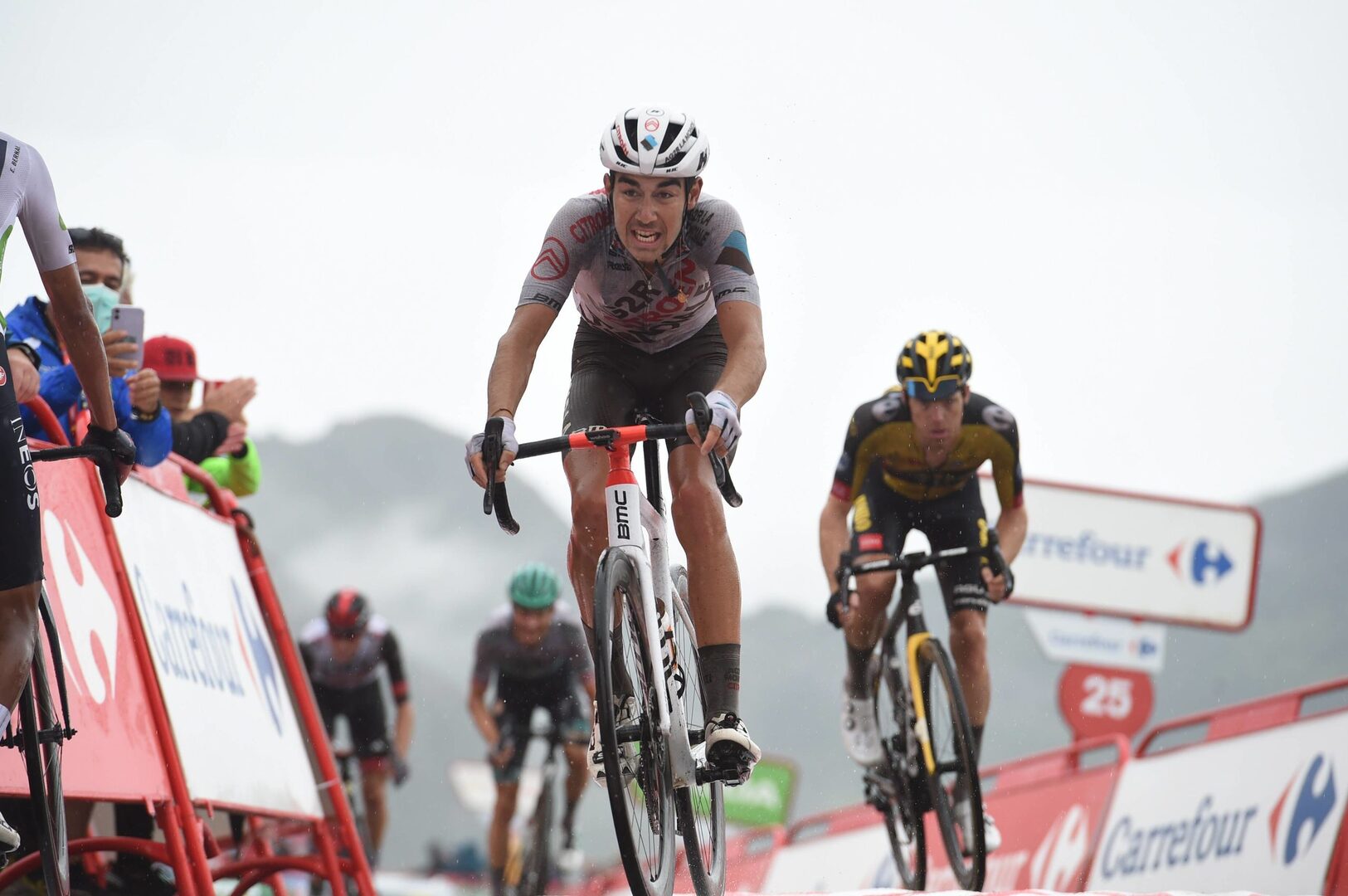 En una etapa con principio en llano y forma de 'clásica', diseñada por el campeón de Tour Óscar Pereiro y con hasta cinco puertos que parecen muros, el francés esperó al último kilómetro para el final, poco después de neutralizar con el grupo de Roglic al fugado del día, el sudafricano Ryan Gibbons (UAE Team Emirates), para llevar a cabo su fuga y conseguir el triunfo.