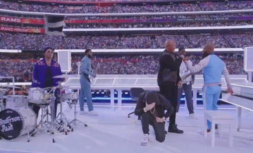 Justo al acabar su actuación y pese a que desde la organización le prohibieron que realizase gesto alguno de este tipo, Eminem, siempre irreverente, cumplió con su promesa y puso la rodilla en el suelo en homenaje al exjugador de los 49ers. Rápidamente se hizo viral y desató la polémica en territorio norteamericano.