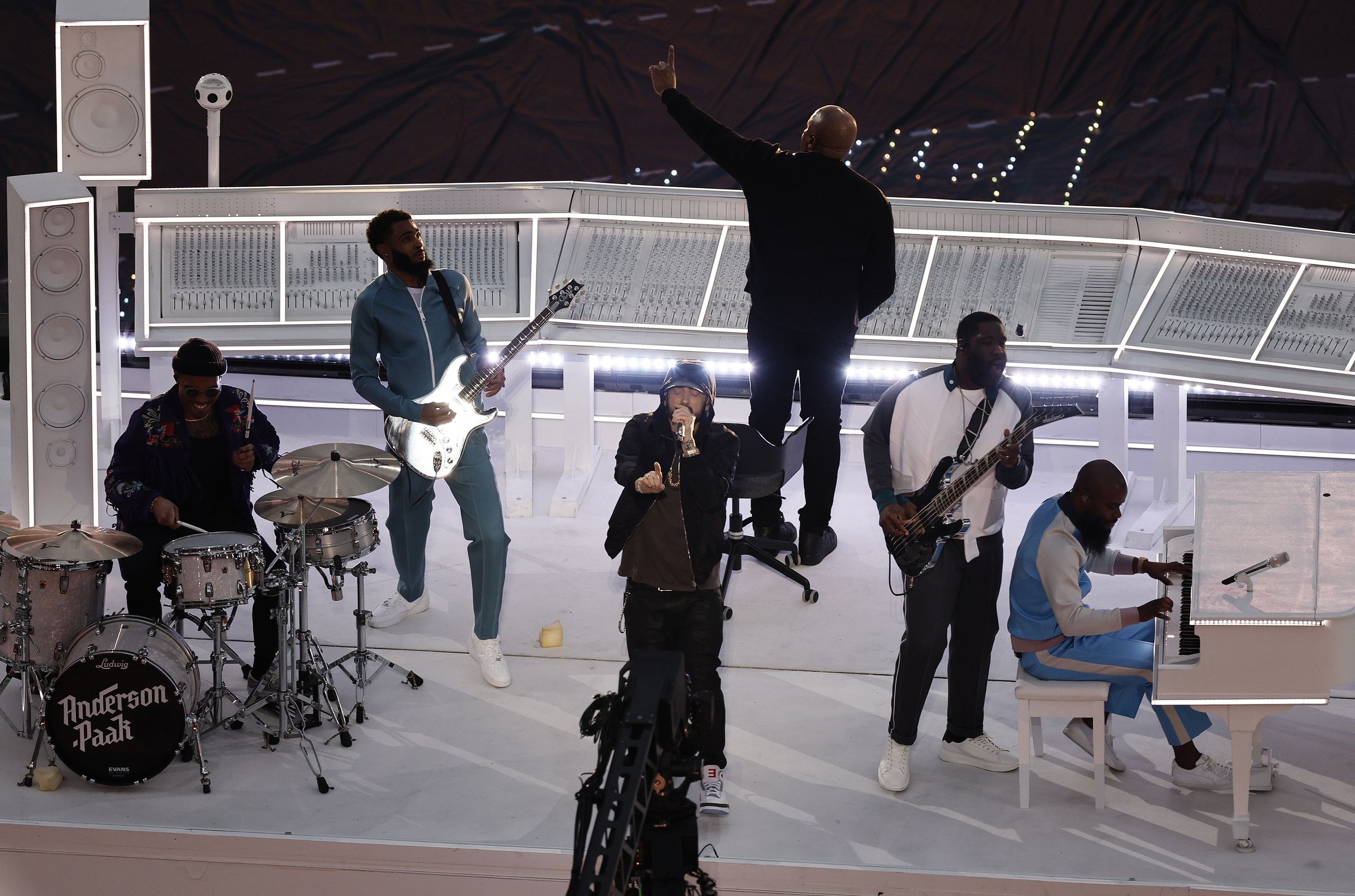 El orgullo del rap en el corazón de la Super Bowl. Esa fue la apuesta de Dr. Dre y Snoop Dogg para su show de la final de la NFL, en el que tuvieron como invitados a estrellas del hip-hop como Kendrick Lamar, Mary J. Blige, Eminem y la aparición sorpresa de 50 Cent.