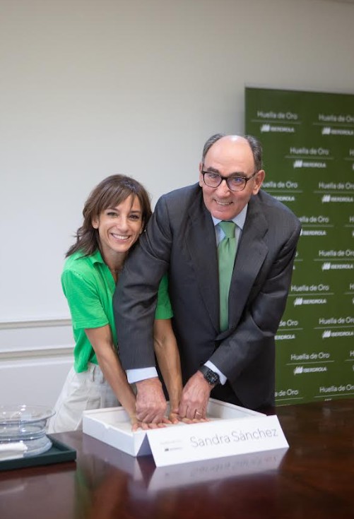 La karateca Sandra Sánchez ha sido recibida en las instalaciones de Iberdrola por el presidente de la compañía, Ignacio Galán, quien le ha hecho entrega del diploma Huella de Oro Iberdrola como reconocimiento a su carrera deportiva.