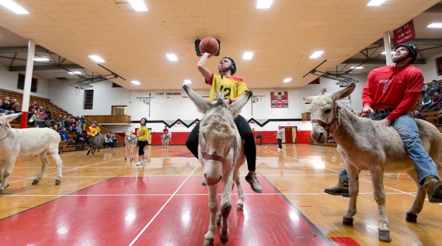 Un nuevo baloncesto está arrasando en Estados Unidos. Una modalidad en la que los jugadores aparecen en la cancha montados en burro y en la que dejan simpáticas imágenes tratando de encestar mientras intentan no caerse del animal.