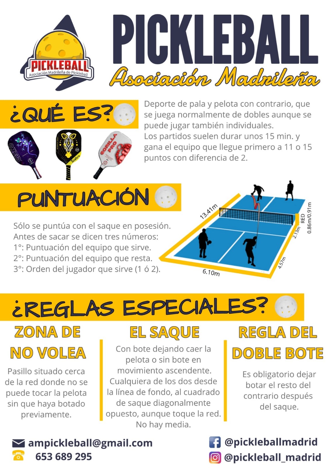 El reglamento es muy sencillo. El partido lo gana el primer jugador (o pareja) que llega a los 11 puntos con una ventaja de dos sobre su oponente. Sólo hay un saque y no un segundo, como en el tenis, y el servicio se realiza desde abajo, como en el pádel.