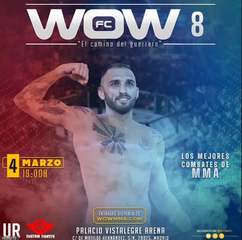 El Palacio de Vistalegre de Madrid acogerá el próximo sábado 4 de marzo, a partir de las 19:00 horas, el evento ‘WoW 8’, la octava edición de las veladas profesionales de artes marciales mixtas (MMA, por sus siglas en inglés), organizada por la promotora Way of Warrior (WoW) y que reunirá a los mejores luchadores profesionales del panorama nacional.
