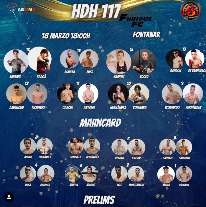 Podría decirse también que Hombres de Honor 117 será un duelo entre España e Italia, pues los combates maincard (profesionales) verán pelear a luchadores de nuestro país contra los italianos.