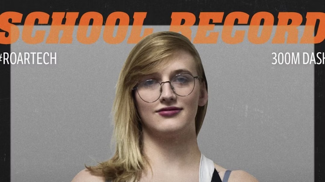 Sadie Schreiner, male competing with the women, won the women's 200 & 400m today at the Liberty League championship meet. He broke the 400m women's record in the process