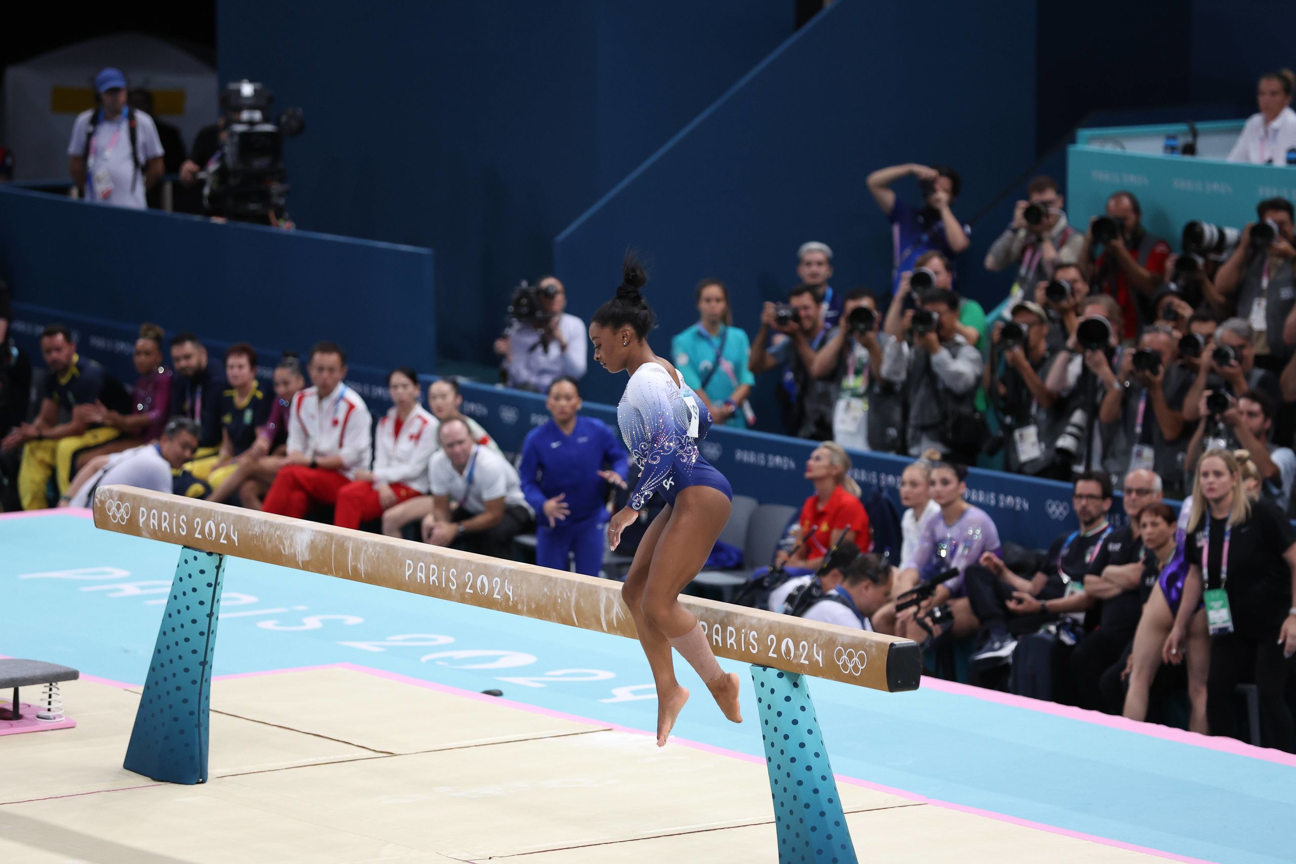 Además, por la mañana, Biles tuvo otro error grave cayéndose en su ejercicio de la barra de equilibrio: