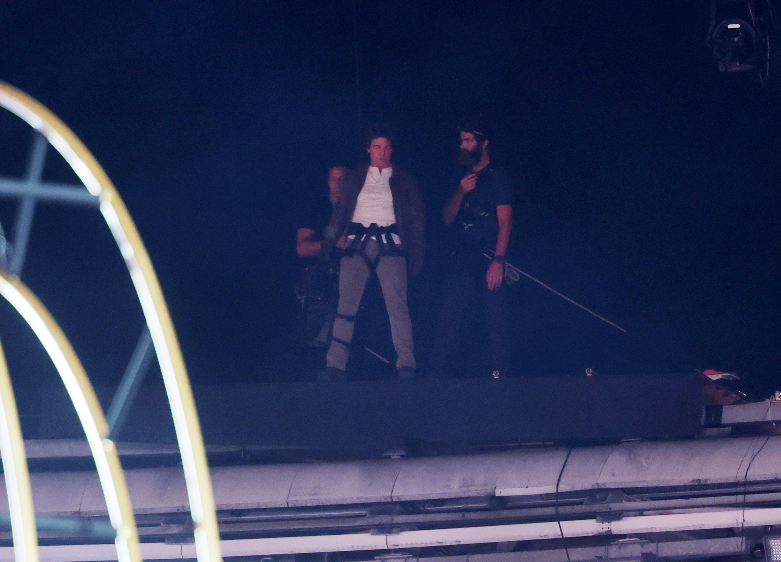 Tom Cruise se lanza desde la cornisa del estadio olímpico para llevarse el testigo y comenzar el viaje olímpico que durará 4 años hasta el comienzo de los Juegos Olímpicos de Los Ángeles 2028