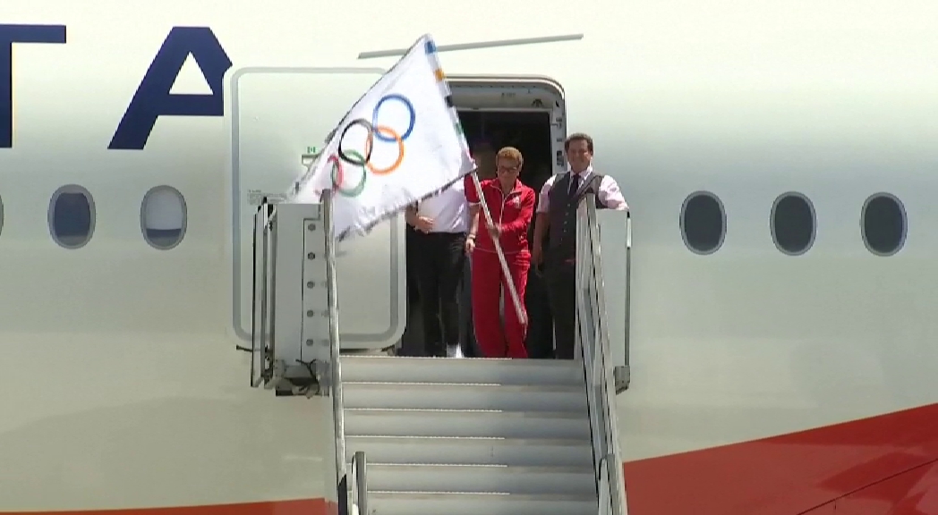 La bandera llegó a bordo de un avión de Delta Airlines que transportaba a atletas estadounidenses, y estaba pintada con "LA28" y palmeras en un costado. Ha sido la alcaldesa de Los Ángeles, Karen Bass, la encargada de traerla desde París en el avión, vestida con un chándal rojo del equipo de EEUU. Será la tercera vez que Los Ángeles sea sede de los Juegos en la era moderna, después de haber sido la ciudad anfitriona en 1932 y 1984.