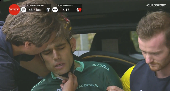 Y esta la cara de mareo y de dolor del propia ciclista: