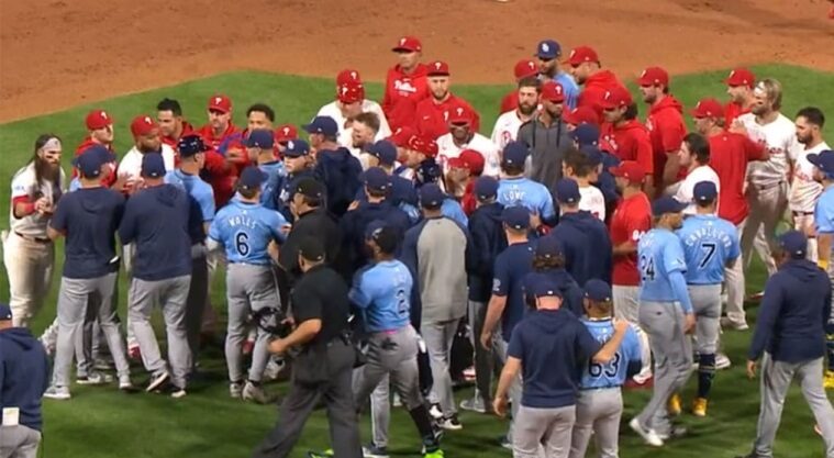El partido estaba casi finiquitado en la octava entrada con los Rays lanzando y los Phillies dominando por 9-4 en el marcador. Edwin Uceta decide lanzar un sinker de 96 millas por hora directo al cuerpo de Nicholas Castellanos.