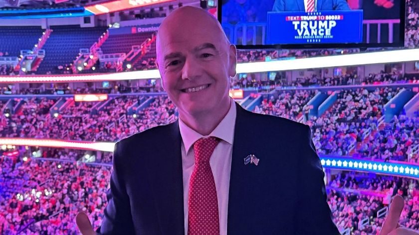 Gianni Infantino, presidente de la FIFA, mostró públicamente su apoyo a Trump. En su publicación en Instagram, aseguró que era un "increíble honor y privilegio", tanto para él como para la FIFA, "ser reconocidos por Trump durante su discurso de victoria en Washington DC". Infantino estuvo sentado cerca de Kamala Harris, Joe Biden y Bill Clinton durante el evento.