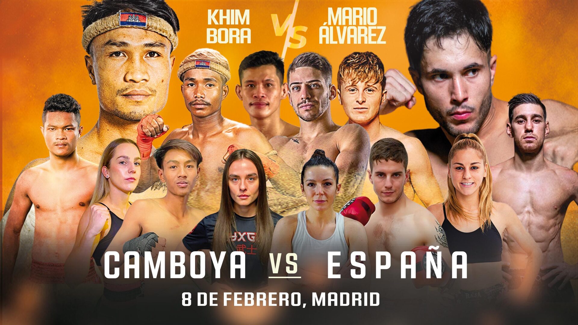 El cartel incluye seis superfights y un torneo masculino en el peso de 55 kilos, donde se disputarán el título Kevin Martínez, cuatro veces campeón de España, campeón europeo WMC y medallista en competiciones internacionales; Thai Barlow, campeón mundial de Roar Combat League y CFS; y los camboyanos Sovannkhim y Bun Sothea.