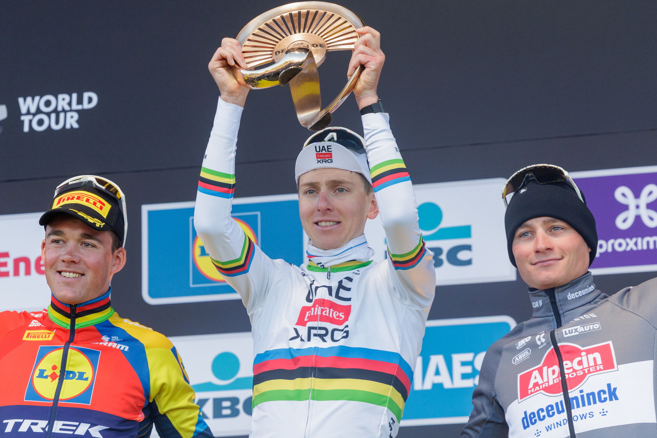 "Ganar con este jersey y en esta carrera es para sentirse orgulloso. Todo ha salido según lo planeado, estoy muy feliz", dijo en meta Pogacar, quien batió por insistencia a todos sus rivales. Le siguieron en meta a 1 minuto el danés Mads Pedersen (Lidl Trek) y el neerlandés Mathieu Van der Poel (Alpecin), su gran rival después después de la Milán San Remo que le arrebató al campeón mundial.