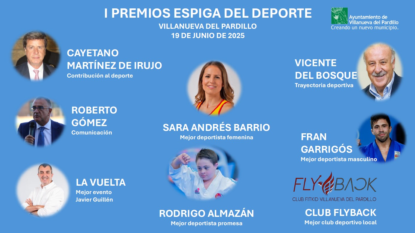 La atleta paralímpica Sara Andrés, el judoca Fran Garrigós, el ex seleccionador nacional de fútbol Vicente del Bosque, La Vuelta ciclista a España y el jinete y empresario Cayetano Martínez de Irujo serán galardonados, entre otros, en la primera edición de los Premios Espiga del Deporte de Villanueva del Pardillo, cuya gala tendrá lugar el 19 de junio (20:30 horas) en el Auditorio Municipal Sebastián Cestero de la localidad madrileña.