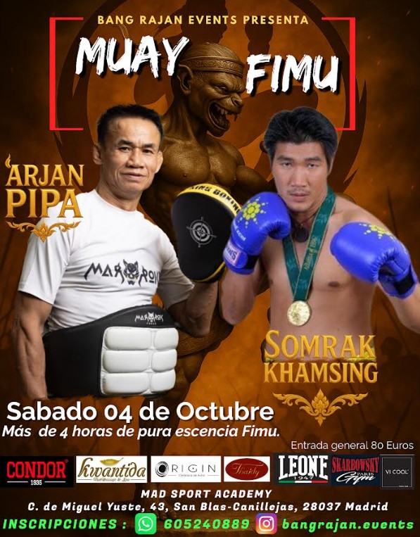La comunidad del muay thai está en plena ebullición en España: la llegada a nuestro país de dos leyendas de este marcial, como son Arjan Pipa y Somrak Khamsing, representa un contacto directo con la raíz más profunda de uno de los estilos más bellos de este arte: el Muayfimu.