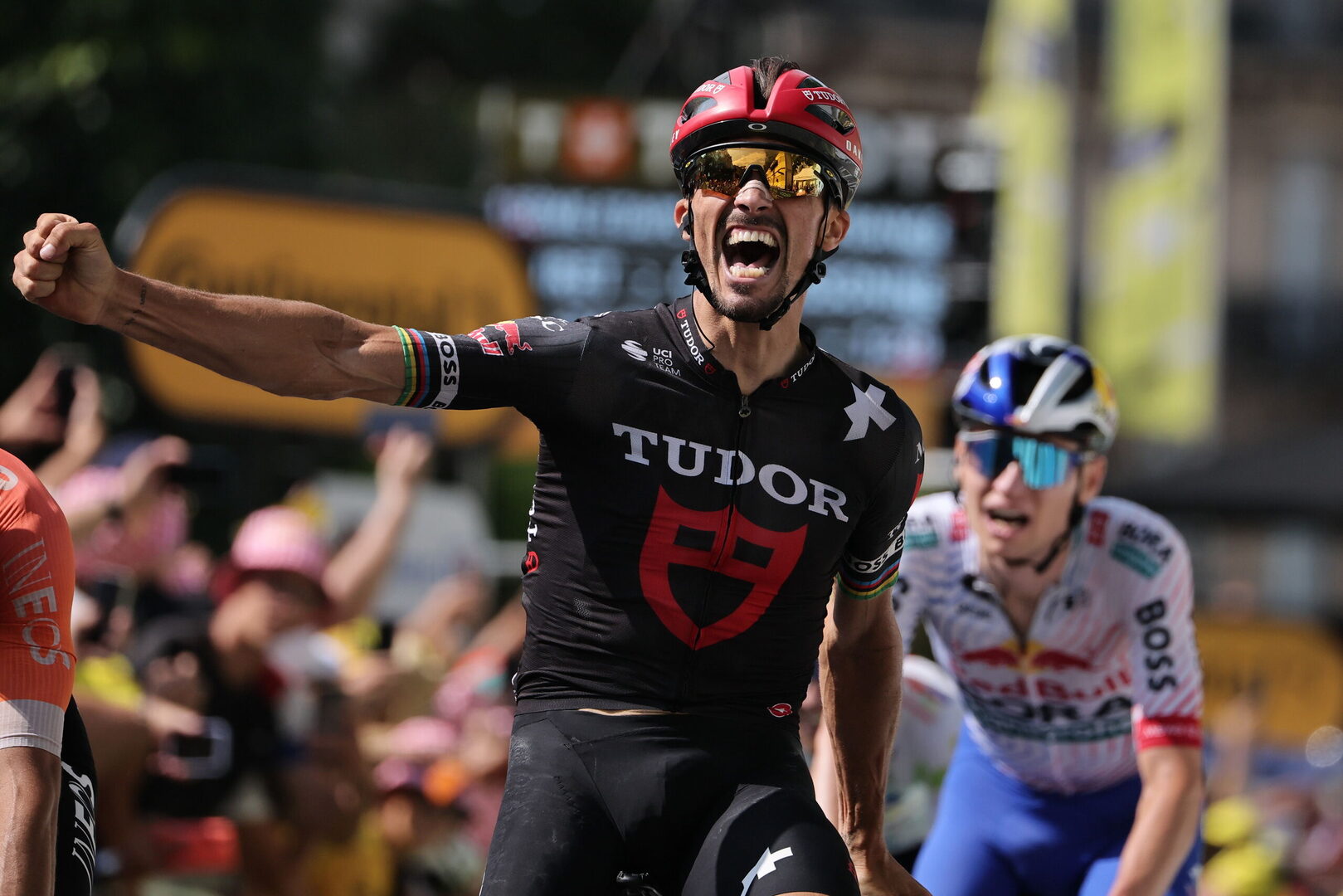 Por detrás de ellos, a 1:36 del ganador, llegó un grupo en el que el más rápido fue Julian Alaphilippe (Team Visma | Lease a Bike). El ciclista francés lo celebró alzando el puño derecho al cielo de Carcasona pensando que había ganado la etapa.