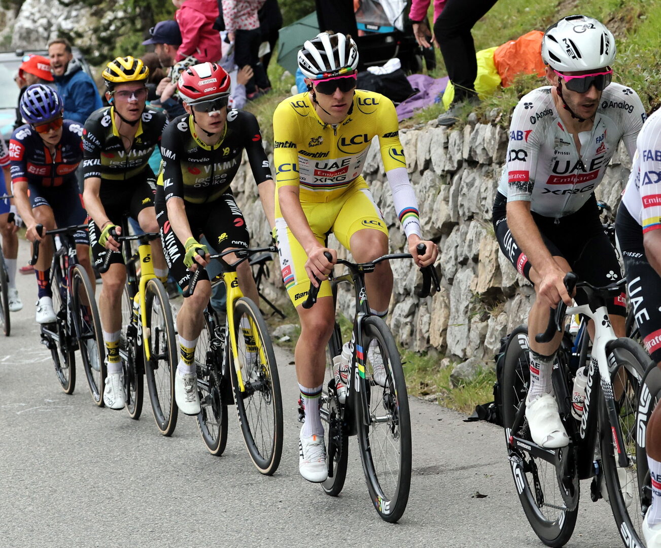 Pero no acabaría ahí la labor del estadounidense, que conduciría toda la bajada. Sin embargo, en la zona del valle que les conducía al Col de la Loze, Einer Rubio (Movistar) y O'Connor atacarían y se irían por delante con el propio Jorgenson, mientras que Pogacar, Vingegaard, Roglic, Gall y Arensman formarían un grupo por detrás que llegaría a pie del Col de la Loze con tres minutos y 50 segundos de distancia.