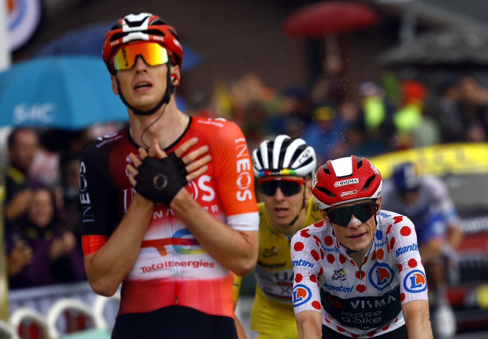 El neerlandés se escapó del grupo de favoritos en la subida a La Plagne, en una etapa que fue reducida en 35 kilómetros por un problema como los ganaderos de uno de los valles que iba a atravesar, y acabó imponiéndose en la cima sin que Pogacar ni Vingegaard le disputaran la victoria.