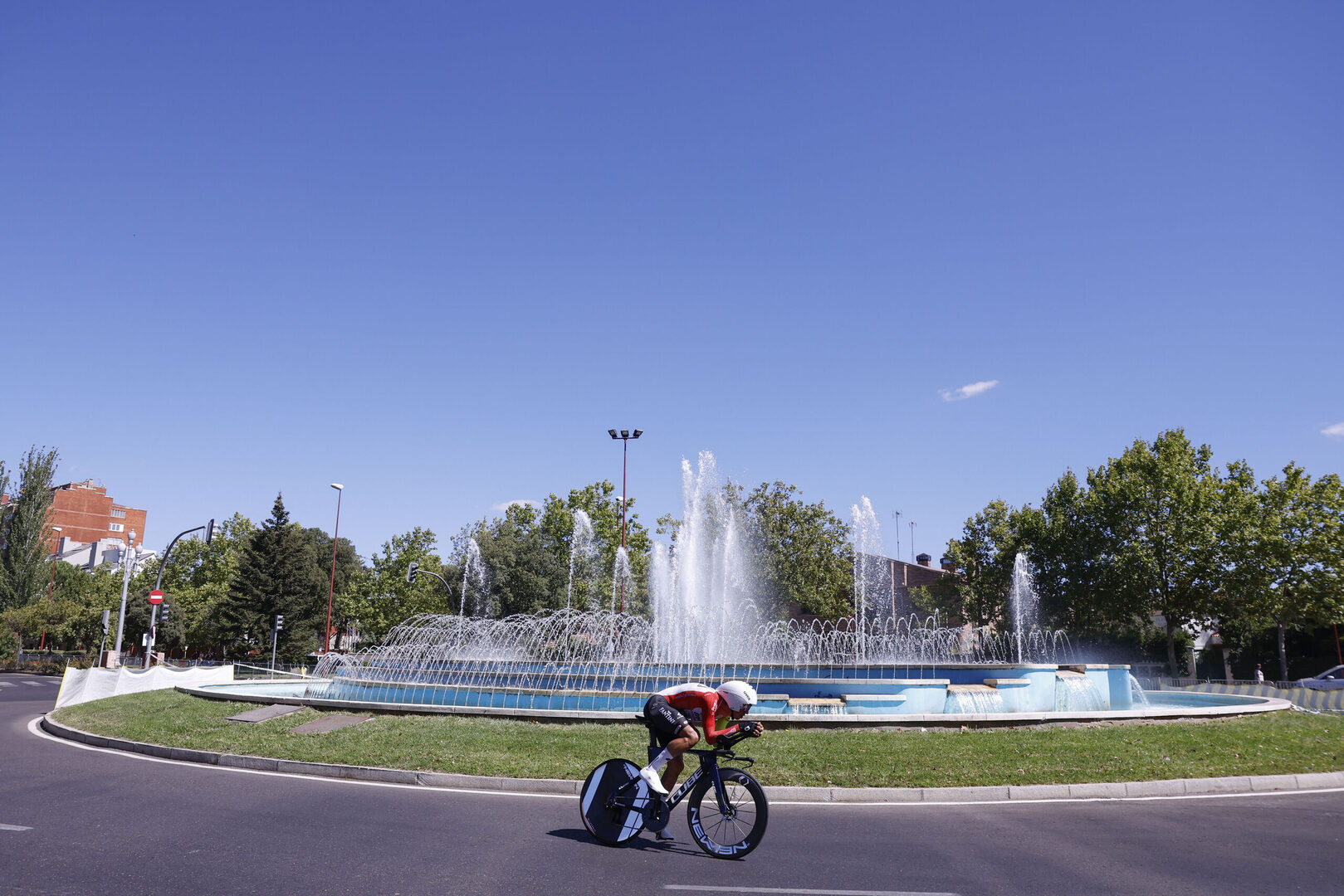 Gritos de "boicot a Israel" y "fuera" al paso de los integrantes del equipo Israel Premier Tech se pudieron oír a lo largo de la prueba en puntos como la rotonda del puente de Adolfo Suárez con Huerta del Rey.